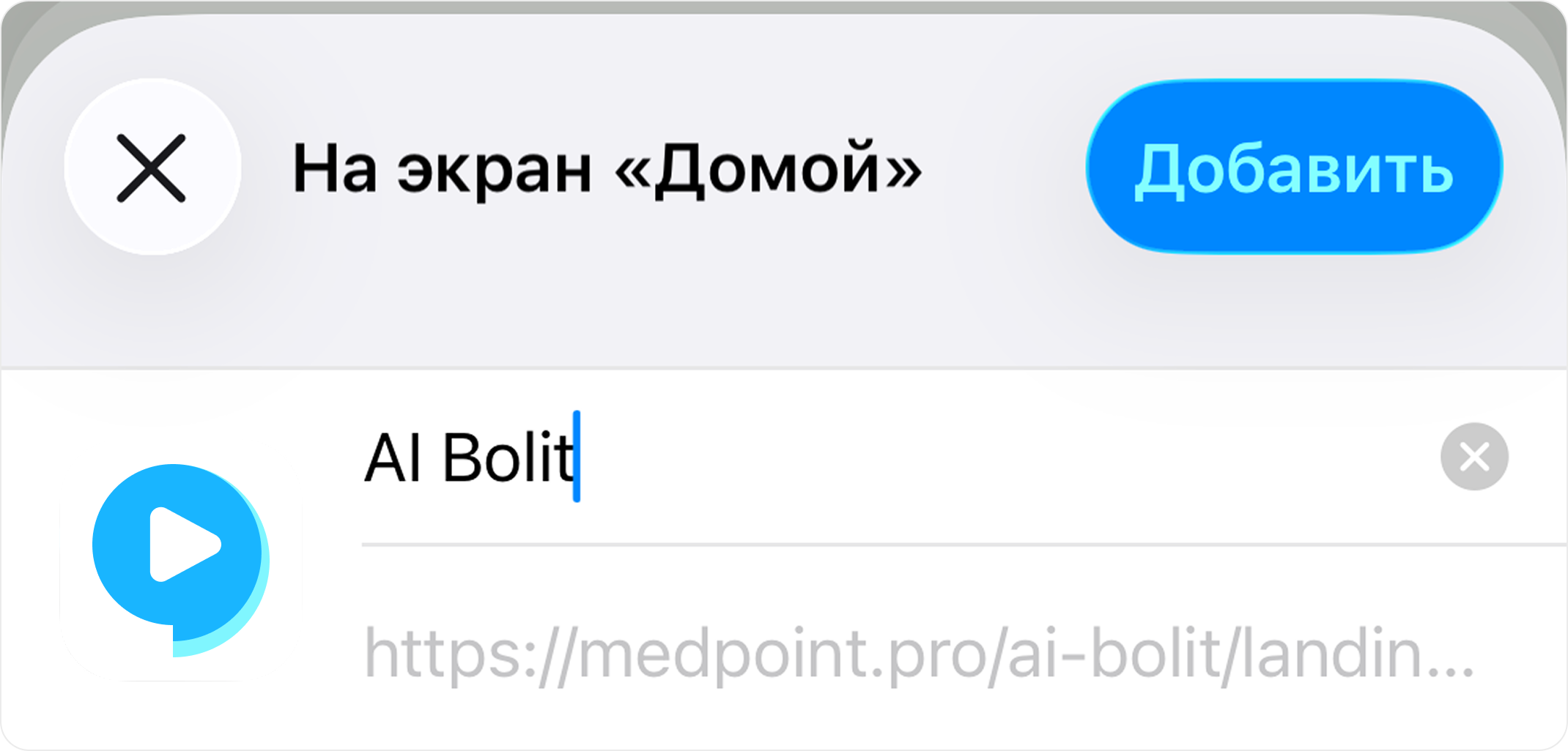 Система предложит вам название для иконки. Можно оставить «AI Bolit». Нажмите «Добавить» в правом верхнем углу.