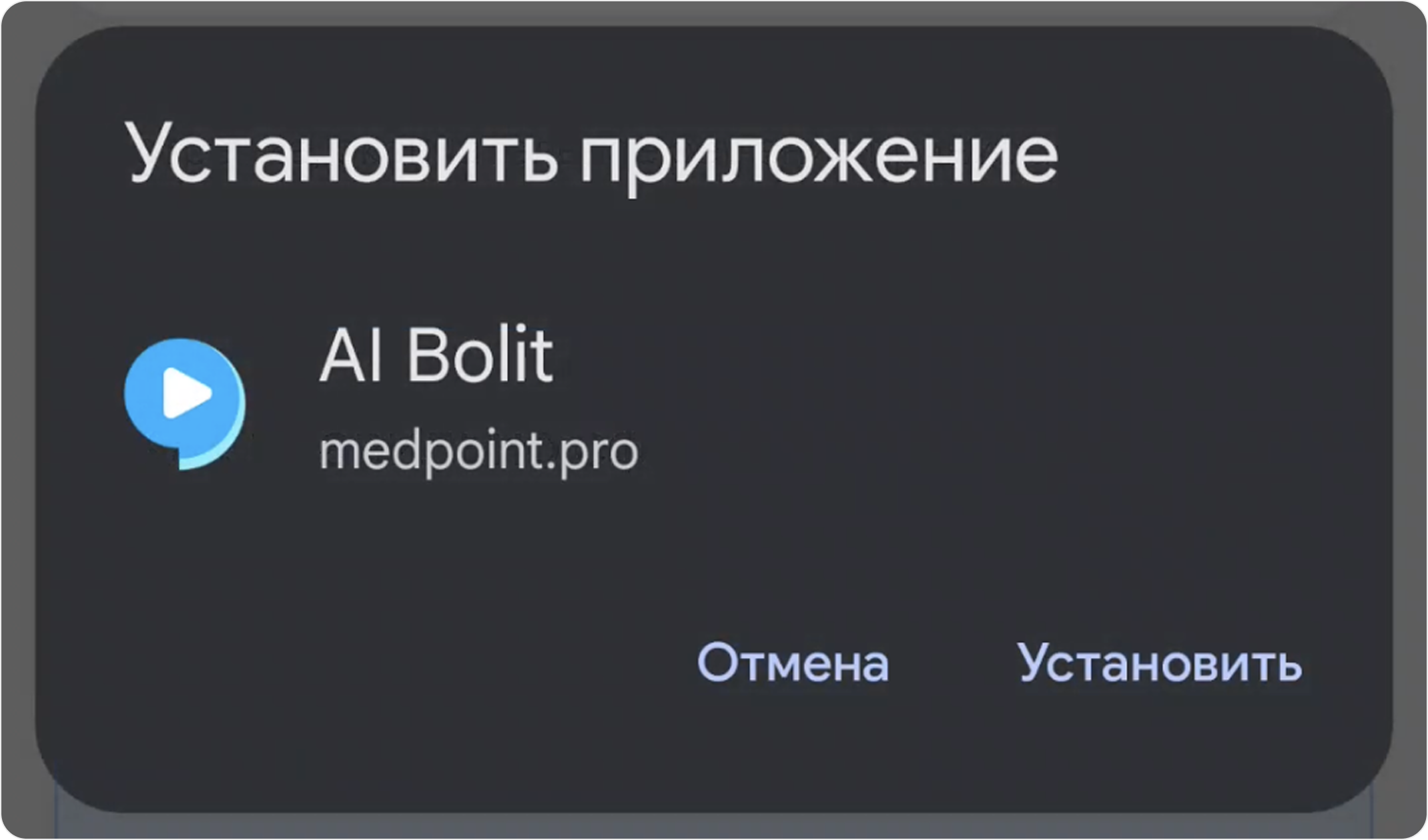 Откройте браузер (Chrome, Samsung Internet или другой) и перейдите по адресу: https://medpoint.pro/ai-bolit/clinic
