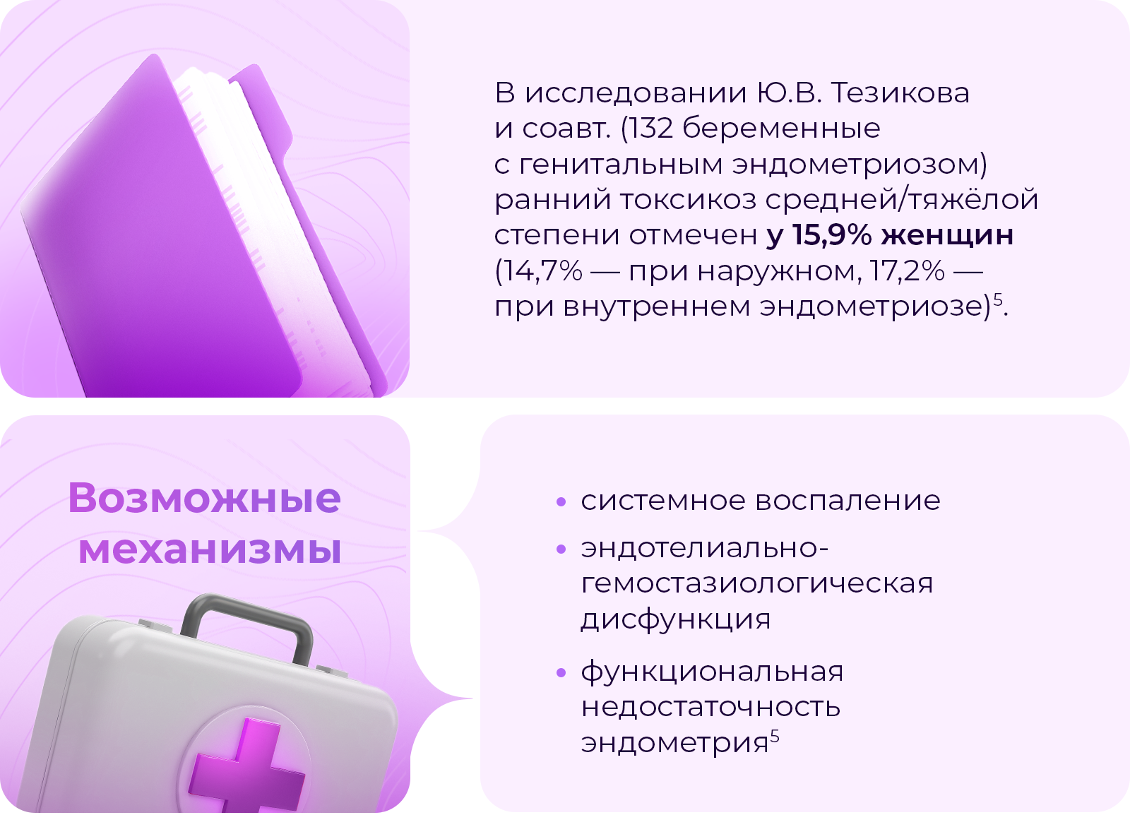 Рациональная нутритивная поддержка, как на этапе планирования беременности, так и в период гестации, способствует снижению выраженности симптомов эндометриоза и уменьшает риск акушерских осложнений6-8: